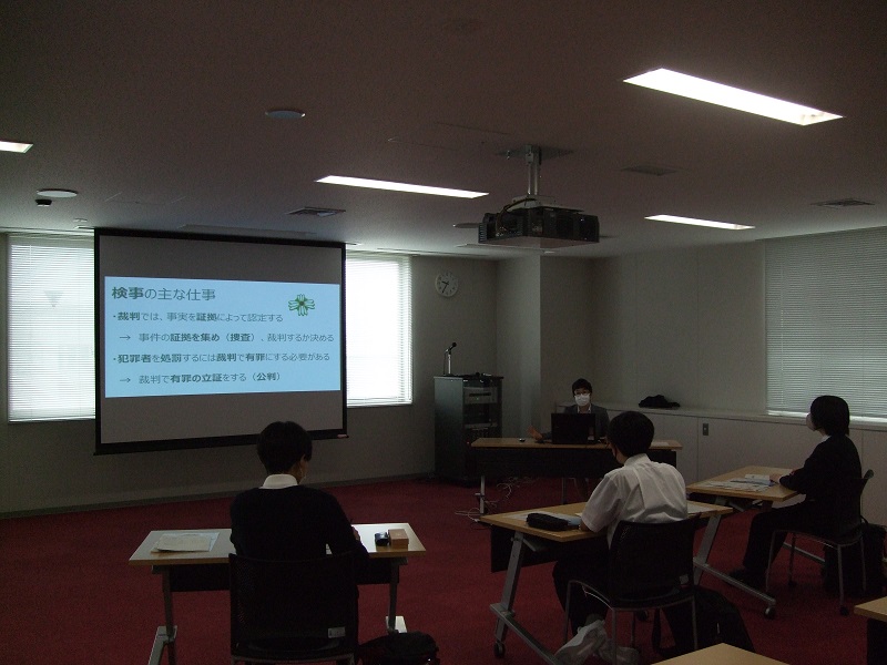 「総合的な学習」で検察庁の職業体験を希望された生徒さんに、検察庁の役割や検事の仕事内容についての説明や質疑応答を行ったほか、職場見学などをしていただきました。