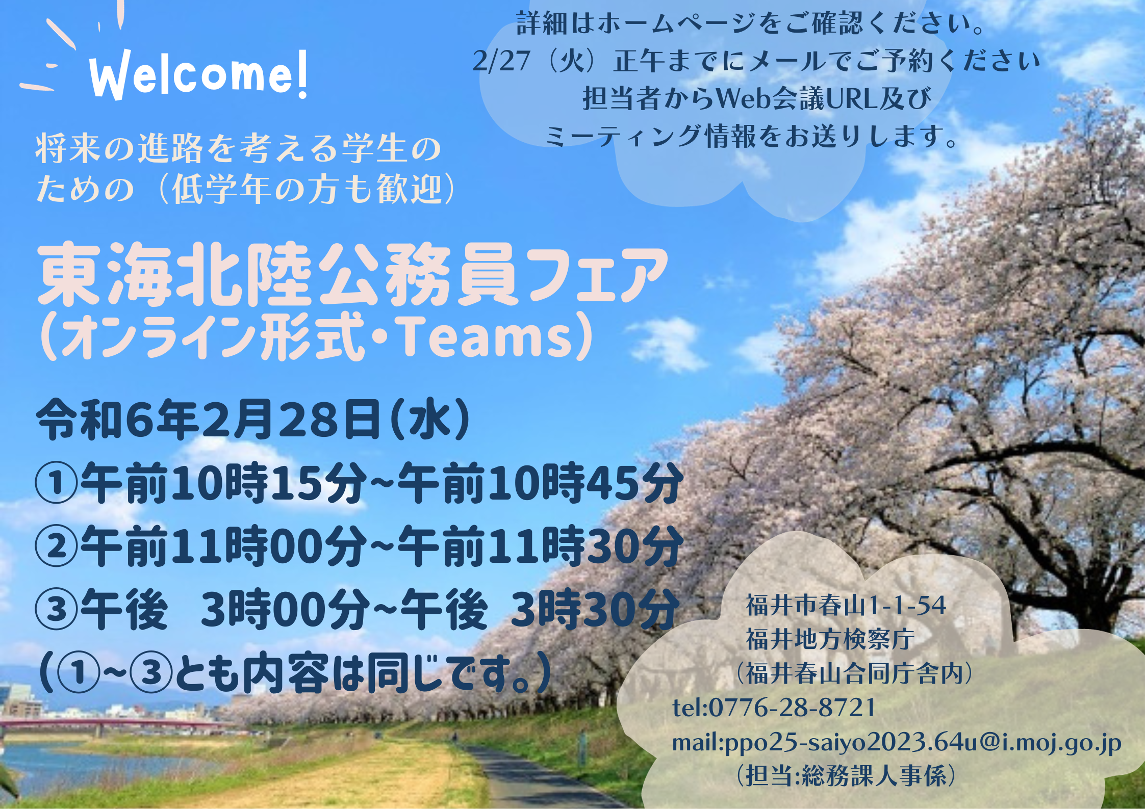 人事院中部事務局が主催する「東海北陸公務員フェア」に福井地方検察庁も参加します。