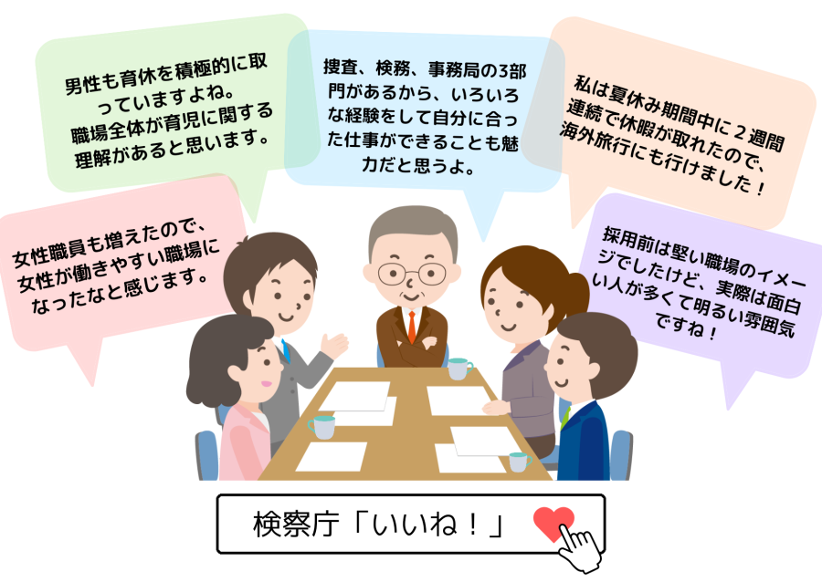 男女共同参画推進委員会の取組の一つとして、検察庁という職場にはどんな魅力があるのか、職員同士で話し合ってみました!