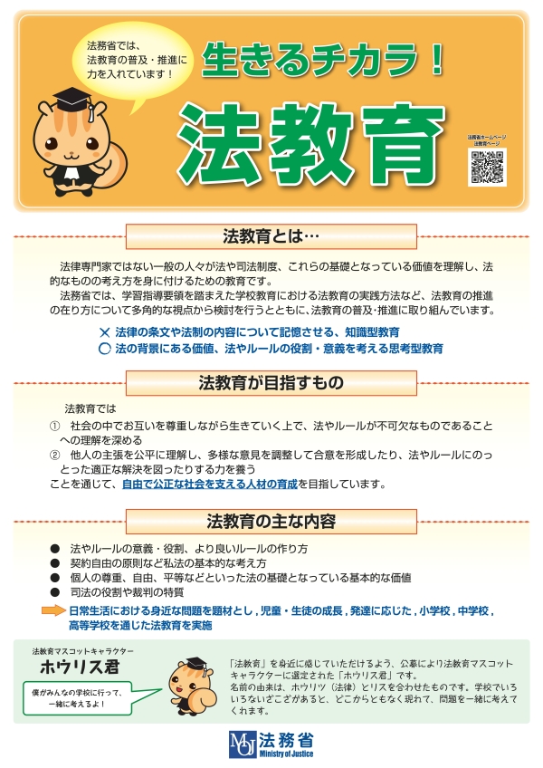 法教育とは?⇐クリックすると法務省ホームページ「生きるチカラ!法教育」に移動します。