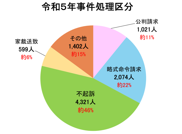 また、約6%を家庭裁判所送致(少年事件)しています。