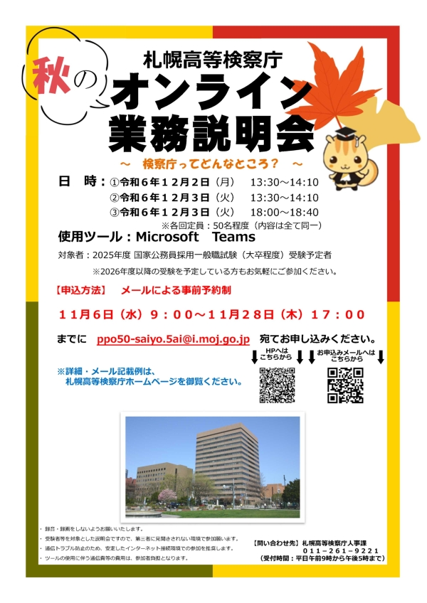 札幌高等検察庁の人事担当者が、オンラインで検察庁の組織や業務について説明し、質問にお答えします!