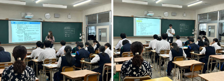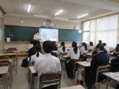 令和6年11月8日(金)、宮崎学園中学校・高等学校を訪問し、中学3年生,高校1、2年生66名に対し出前教室を実施しました。