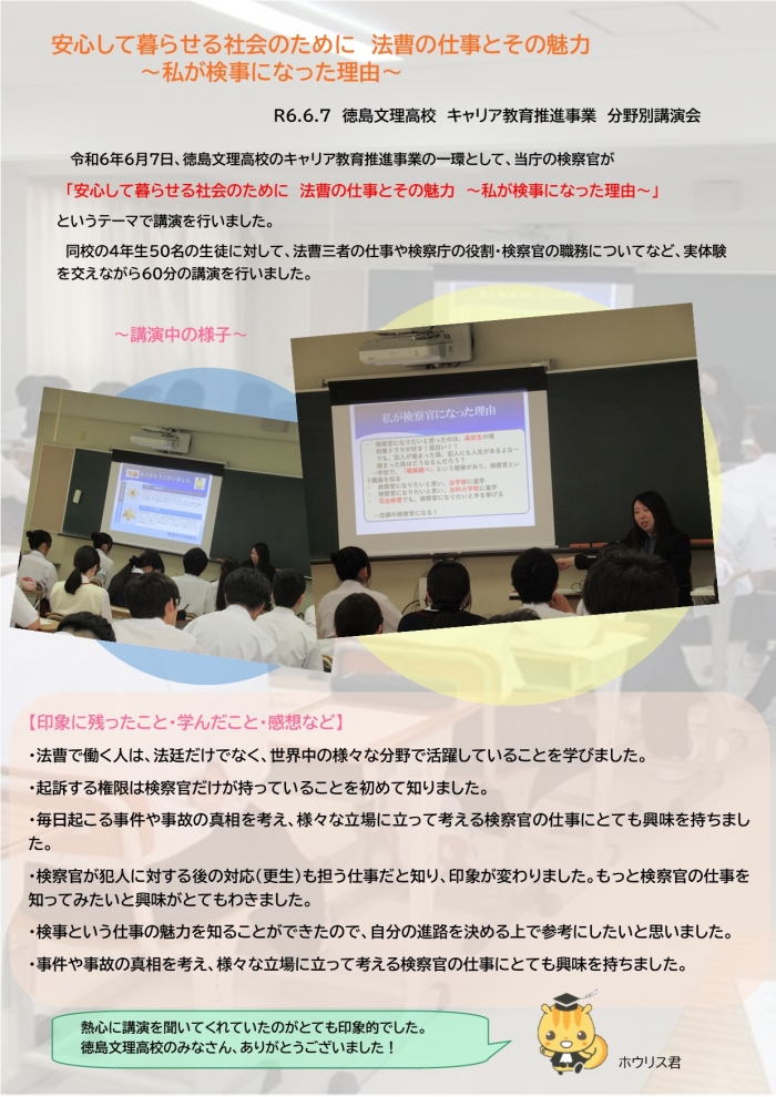 R6.6.7 当庁検察官が徳島文理高校において講演を行いました。