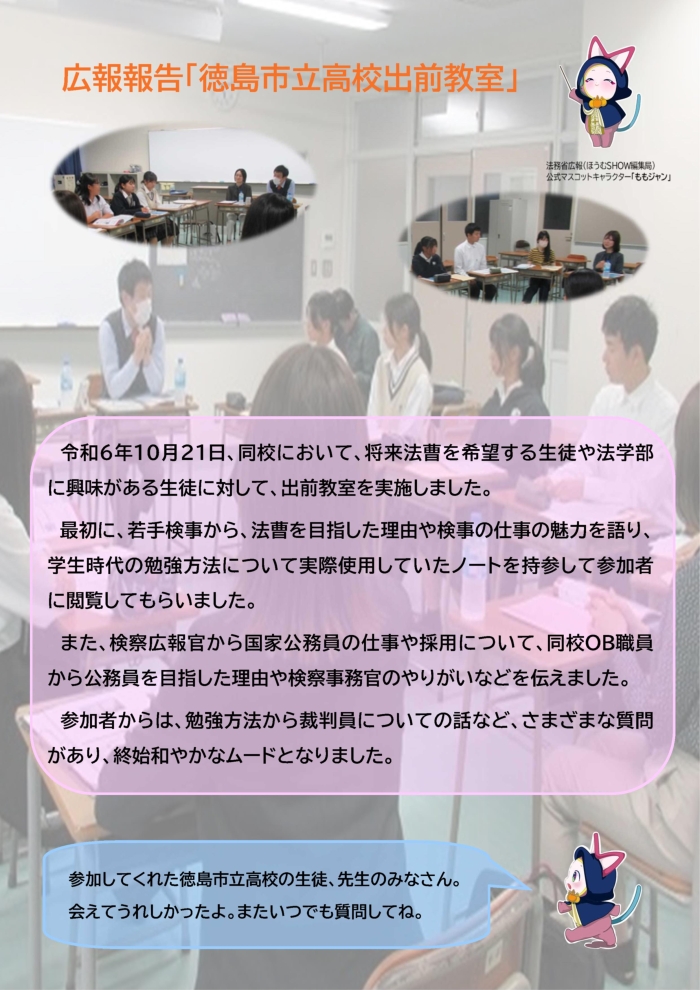 R6.10.21 当庁検察官・検察事務官が徳島市立高校において出前教室を行いました。