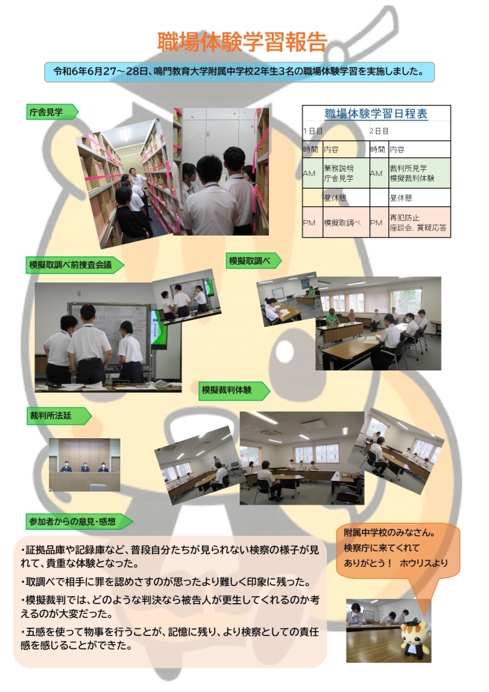 R6.6.27~28 鳴門教育大学附属中学校2年生の職場体験学習を実施しました。