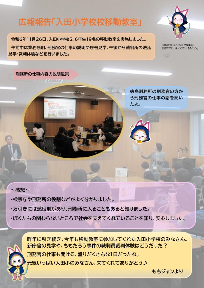 R6.11.26 徳島市立入田小学校の移動教室を実施しました。